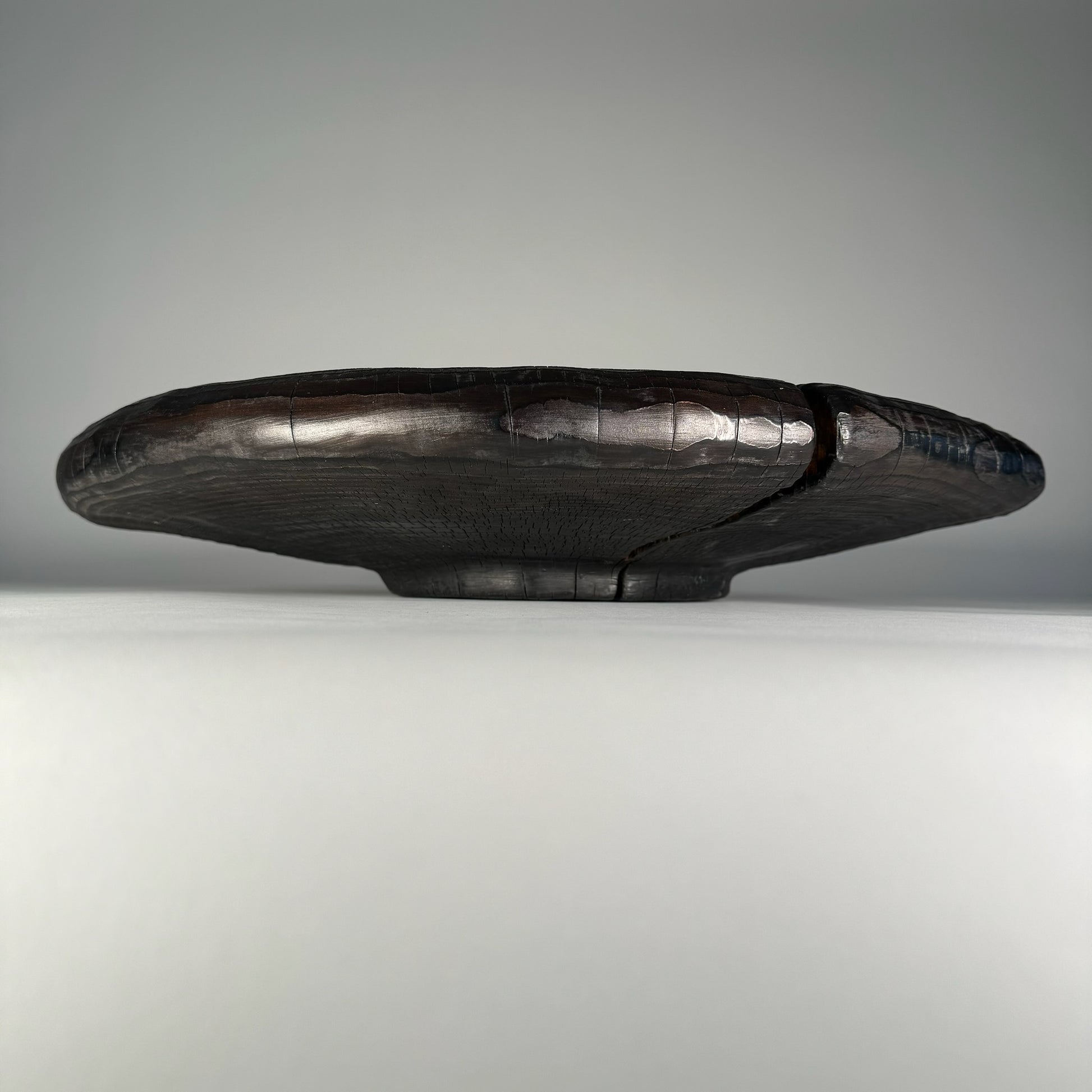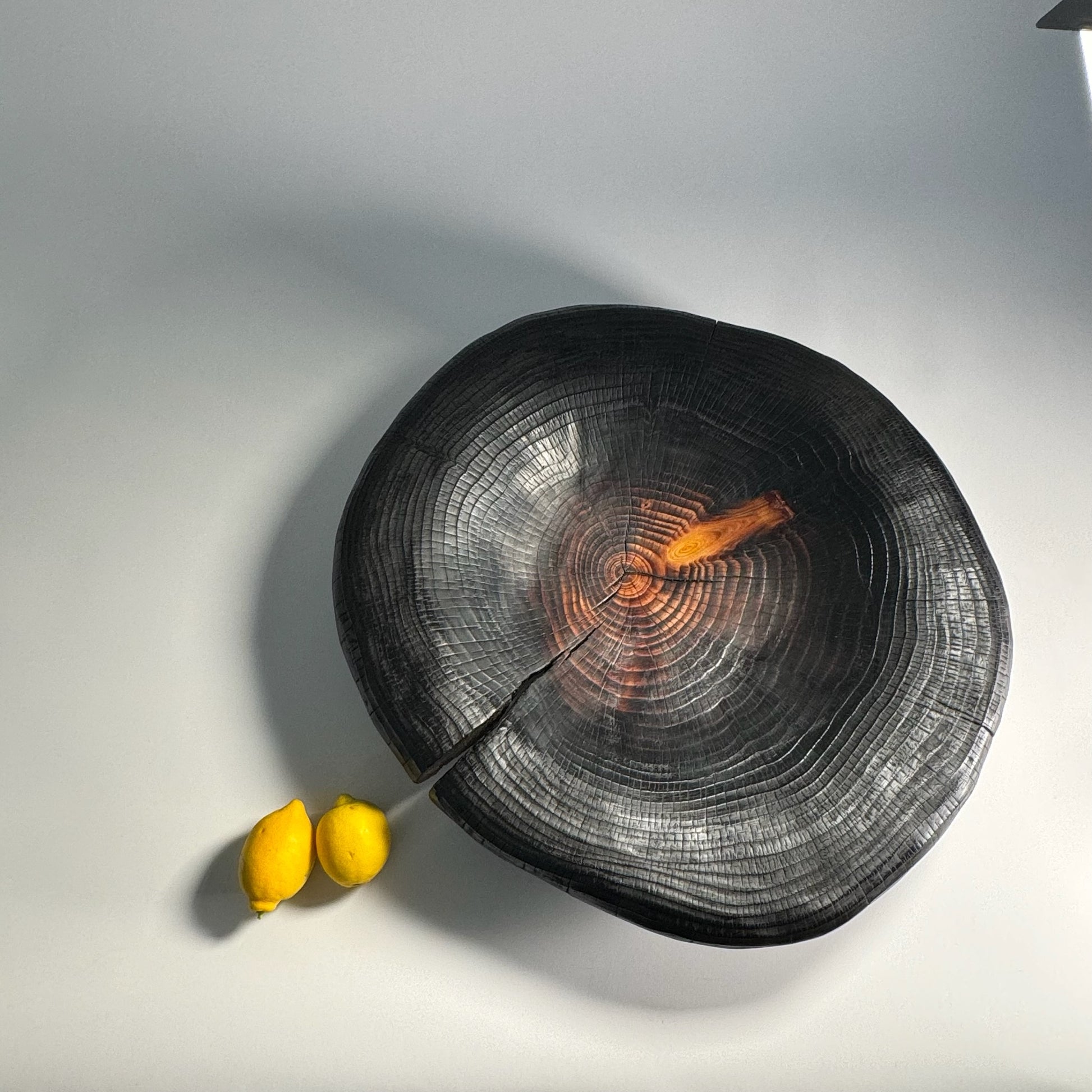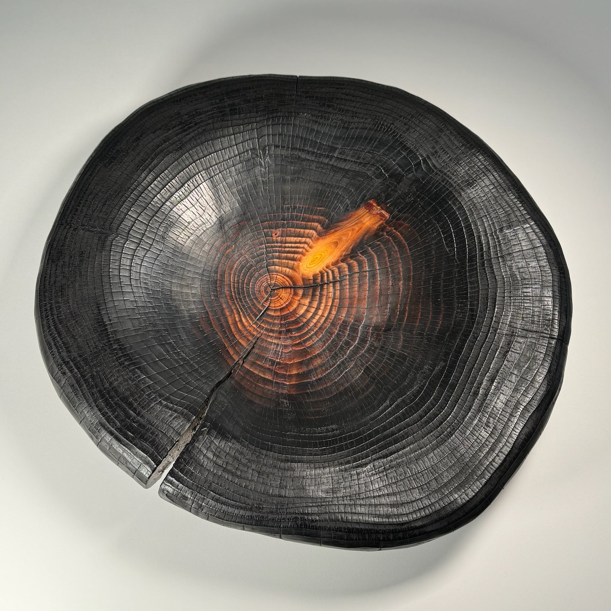 Very large yakisugi bowl in cedar wood. Yakisugi, meaning 'burnt or charred cedar', is an old Japanese process used here to transform the surface colour and texture to create the stunning 'alligator skin' effect this wood is known for.